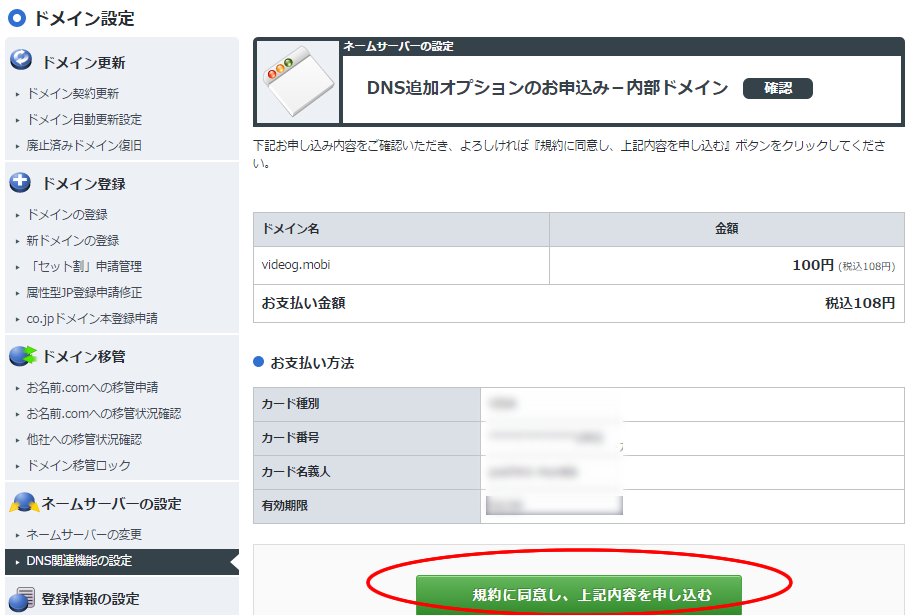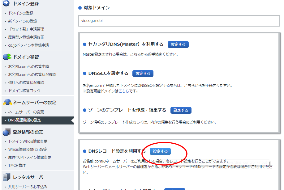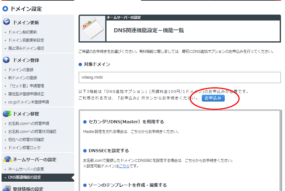 DNS追加オプションを購入(ビデオグではサポート対象外です。)